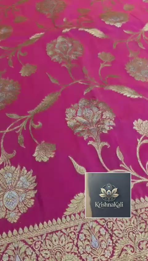 BANARASI KATAN SILK BEAUTIFUL RANI PINK SAREE GOLDEN BROCADE PALLU ALL OVER WOVEN DRESS YOURSELF WITH LOVE